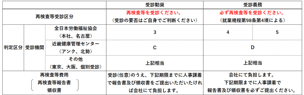 ■ 就業規程において、従業員には再検査受診の義務があることが定められています。